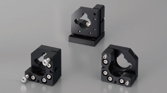 本體為僅需1吋立方空間即可設置的小型鏡架,將θy˙θz的2軸曲折幅˙遲滯抑制至數μrad,定位後60小時(常溫)穩定性亦屬頂級。 操作部螺絲有可用手操作的刻紋把手型與組入機器、 可防止誤操縱的固定螺釘型。