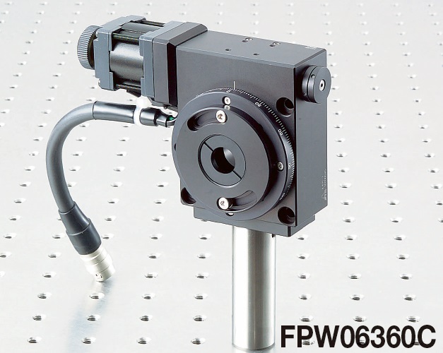 ● 可將偏光濾光片、波長板、偏光稜鏡透過步進電機進行旋轉 的鏡架。